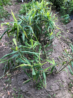葉が黄色くなった頃、今よりもひと回り大きくなった新ショウガを、使う時に1株づつ収穫していくことになりそうだ。