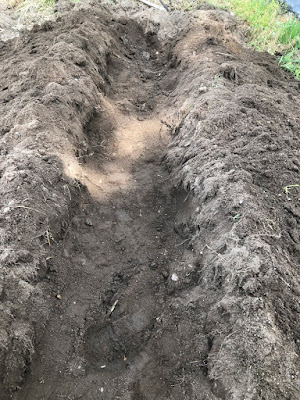 入れ込んだ苗が乾いた後、踏みつけてその上にたっぷり土を被せ高い畝を作った。