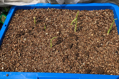 | こちらは、芽出しに去年一番うまくいった方法。 ビニールトンネルの暖かい環境の中に2ヶ月近く置いていた。 |