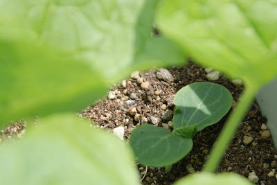 上の写真にある2つの芽は恐らくカボチャだろう。
