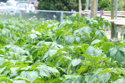 デストロイヤーは男爵芋より芽の出る時期が10日以上遅れ、最初明らかに小さかった。しかし、ここのところぐんぐん大きくなって、今では男爵芋より背が高くなってきた。