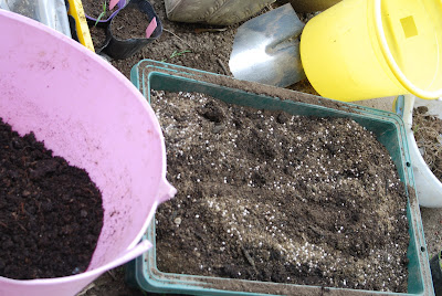 用意する土は、畑の土に、化成肥料、牛糞&鶏糞堆肥、そしてたっぷり、みみず堆肥。