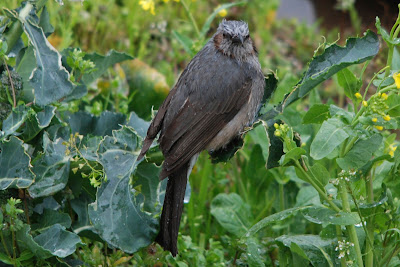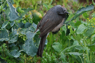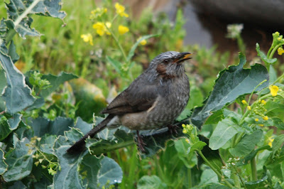 春雨に濡れながらもヒヨドリの食欲はいっこうに衰えない。