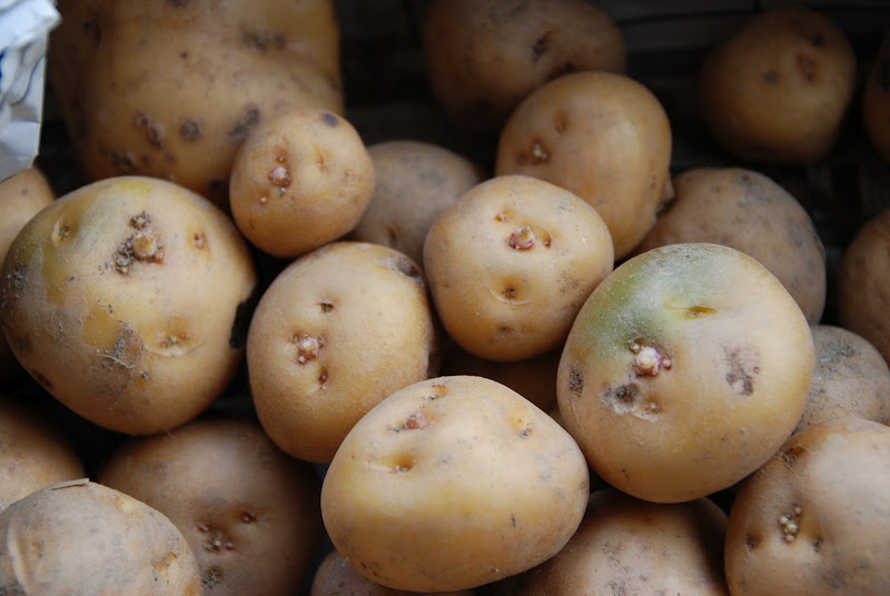 カゴの中に新聞紙に包んでおいていたジャガイモで芽が出ていたのは7個(約20%)程。どれも出始めたばかりの小さな芽だ。