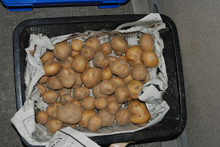 これはその時の写真で、このジャガイモはカゴの中で新聞紙で覆い、そのままの状態で芽が出てくるのを待っていた。