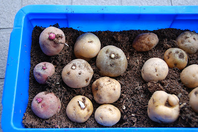 さあ、芽が出てきた種芋君は、予定よりやや遅くなったが、さっそく明日畑に植えることにしよう。