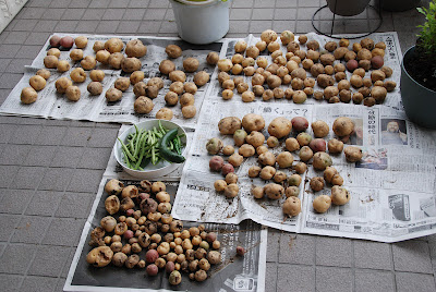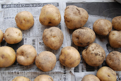 野菜作りの上手な人から見ると笑われてしまいそうだが、2kgの種芋からの収穫できた芋のすべてだ。