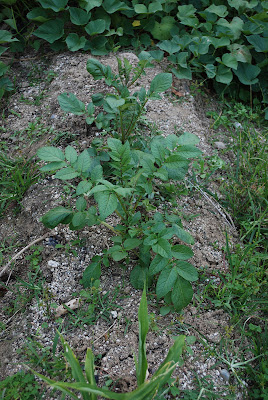 ジャガイモはトマト科とのことで連作が出来ない。何とか、9月13日キュウリやインゲン(モロッコ)などを植えていたところにジャガイモ用の畝を作り種芋を植えてみた。