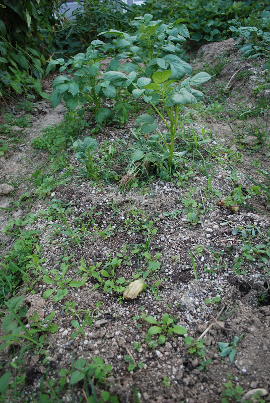 他の種芋からの芽が見えない。カラスにやられた?