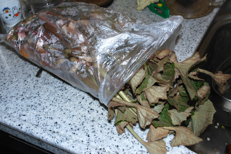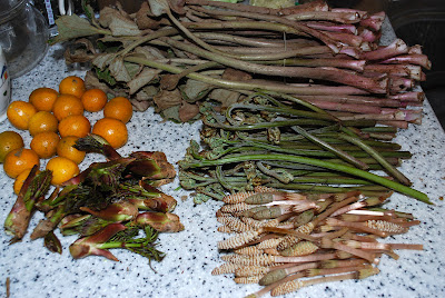 ツワブキがいっぱい採れた。ワラビ、たらの芽はまだ少し早かったが、食べる分だけ採ってきた。
