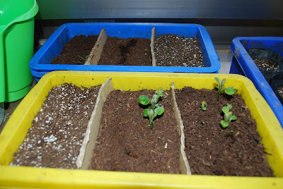 一方、ジャガイモを植えた黄色い箱の向こうに見えている青色の箱はつくね芋の芽だし。まだこちらも芽は出ていない。