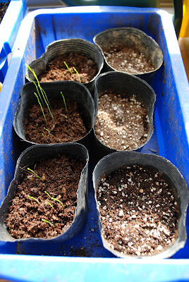 やっと市販の種まきのほうから男爵芋の芽が出てきた。