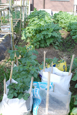 今年初めてジャガイモの袋栽培に挑戦している。