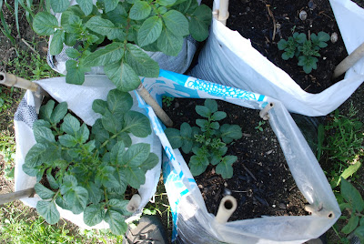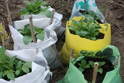 今年初めてジャガイモの袋栽培に挑戦している。
