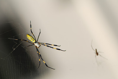 ジョロウクモの成熟したメスの腹部下面には鮮紅色の紋が出現するらしく、下の写真は成熟前のメスだろうか?