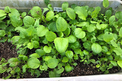 | この頃は後ろに見えるロメインレタスとSチャードが美味しかった。 来年の春もこんな感じでSチャードが収穫できることを願っている。 |