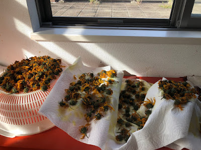 で、昨日はキクイモの花の収穫をして、花茶作り第2弾だ。