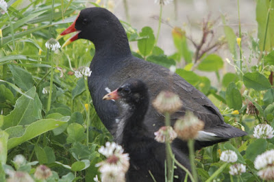 | バンの赤ん坊を襲うのではと、心配しながらアオサギを眺めていた。 |