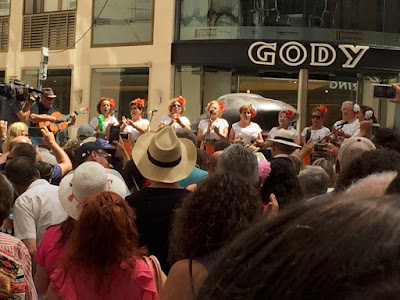 | 皆、髪に花飾りをつけて若々しいが、歌声はさらにパワフルで若々しい。 実年齢は平均75歳くらいだろうか? |