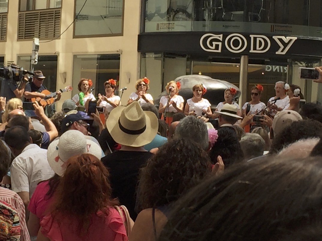 祭りの中心の通りではあちこちで、歌声や演奏が鳴り響いいていたが、オバチャマたちのコーラスは元気一杯で、こちらが若返りそうだ。