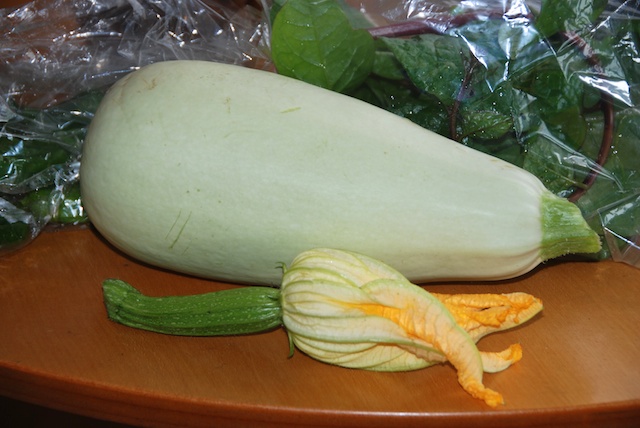 ところが、今日収穫出来たのは白ズッキーニと花ズッキーニが1本づつだ。