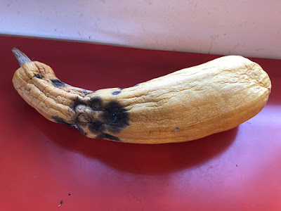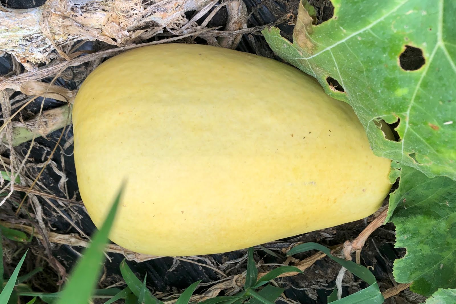 | 畑に残している白ズッキーニはこんな感じの実が3個。 こんな感じでこの時期に腐れるサインがない白ズッキーニは種取りは成功する。 ただ種取りをする時期は晩秋や翌年になることもある。 |