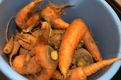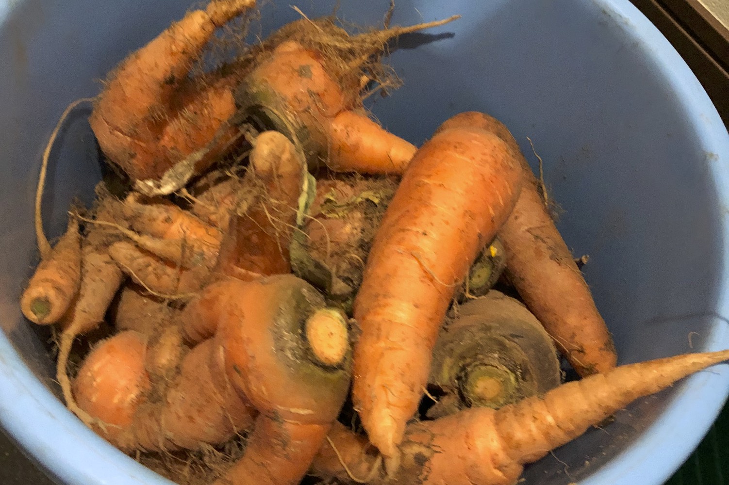 畝をすべて掘り起こすと、この畝にはニンジンも植えていたのだが、取り忘れのニンジンがこんなに出てきた。
