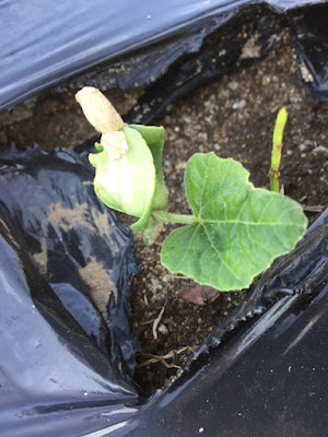 この長ズッキーニ、芽が無事の出ているのか心配していた。