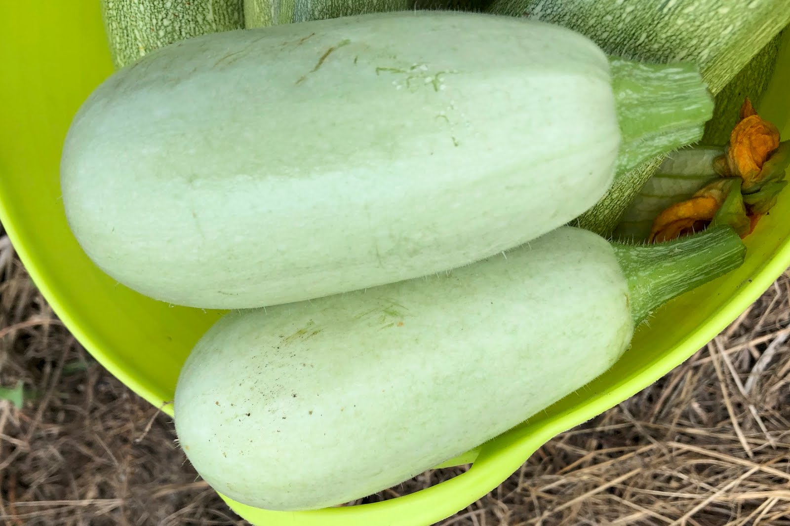 5月の終わりに収穫できていたのは、ほとんどが黄緑ズッキーニだったが、この時期になると他の種類のズッキーニも揃ってきた。