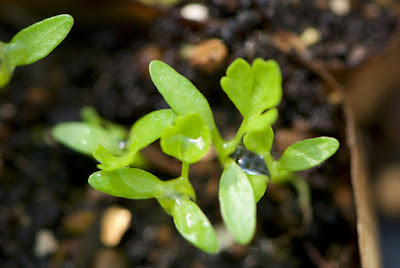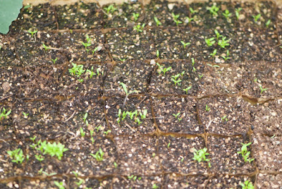 | こちらは、発芽して3週間の小さなセロリの苗。 発芽するまでは1ヶ月もかかった。 |