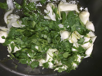 さらに、ディルとセロリも加え、オリーブオイルたっぷりに炒められ、