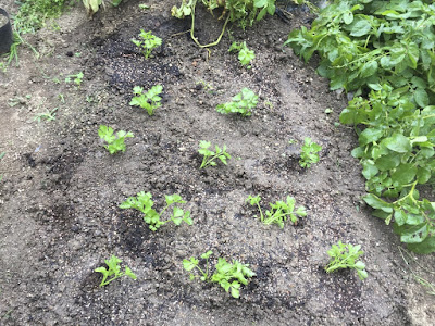 で、比較的涼しく、かつ水やりが簡単な場所ということで、第1菜園の数カ所に移植した。