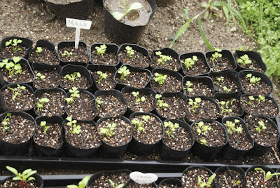 そこで、それらの小さな苗の中で比較的大きなものを選んで、ビニールポットに移植してみた。