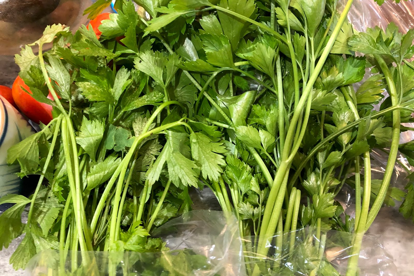 ところで、下の写真は今日収穫したセロリとイタリアンパセリ。