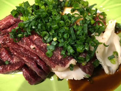 | 馬刺しに合わせる小ネギはオババん家から最高のものをいつも頂いている。 |