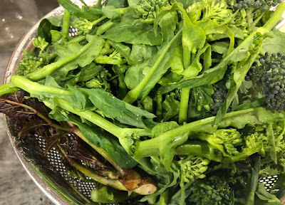 | こちらにあるのは、最近収穫が続いているチーマディラーパやブロッコリーの側芽。 これらも次々に天ぷらにしてもらった。 |