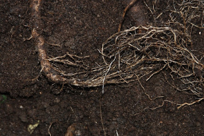 袋栽培ではゴボウが土の中に突き刺さるので長いゴボウが採れるのだが、ダストボックスでは、成長するゴボウが底に突き当たり、そこで直角に曲がってしまう。
