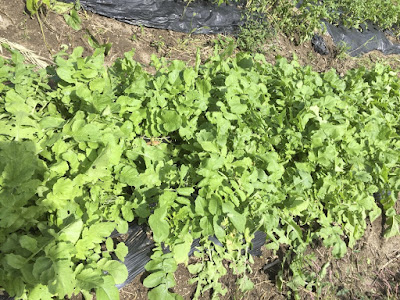 | 今日は、畝の半分ほど間引きしておいた。 これらを食べ終わった後で、残りの間引きをしよう。 |