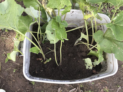 今年は、通常の大根と、聖護院大根の種を蒔いたのだが、小さな間引き菜でも違いは分かるものだ。