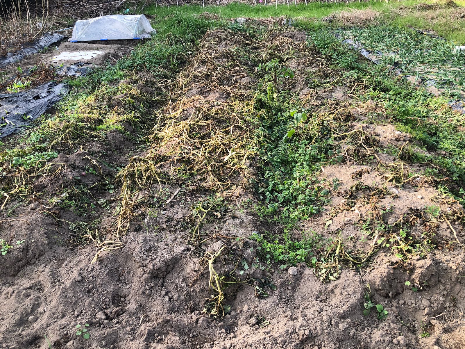 夏ジャガの場合は、梅雨を過ぎて夏の時期に芋を取り残すと、それらは暑さで腐ってしまう。