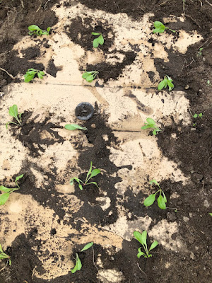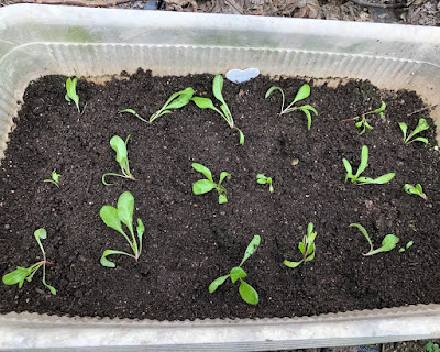 こちらは、バラ蒔いたスイスチャードの種から出た小さな苗を整理したプランター。