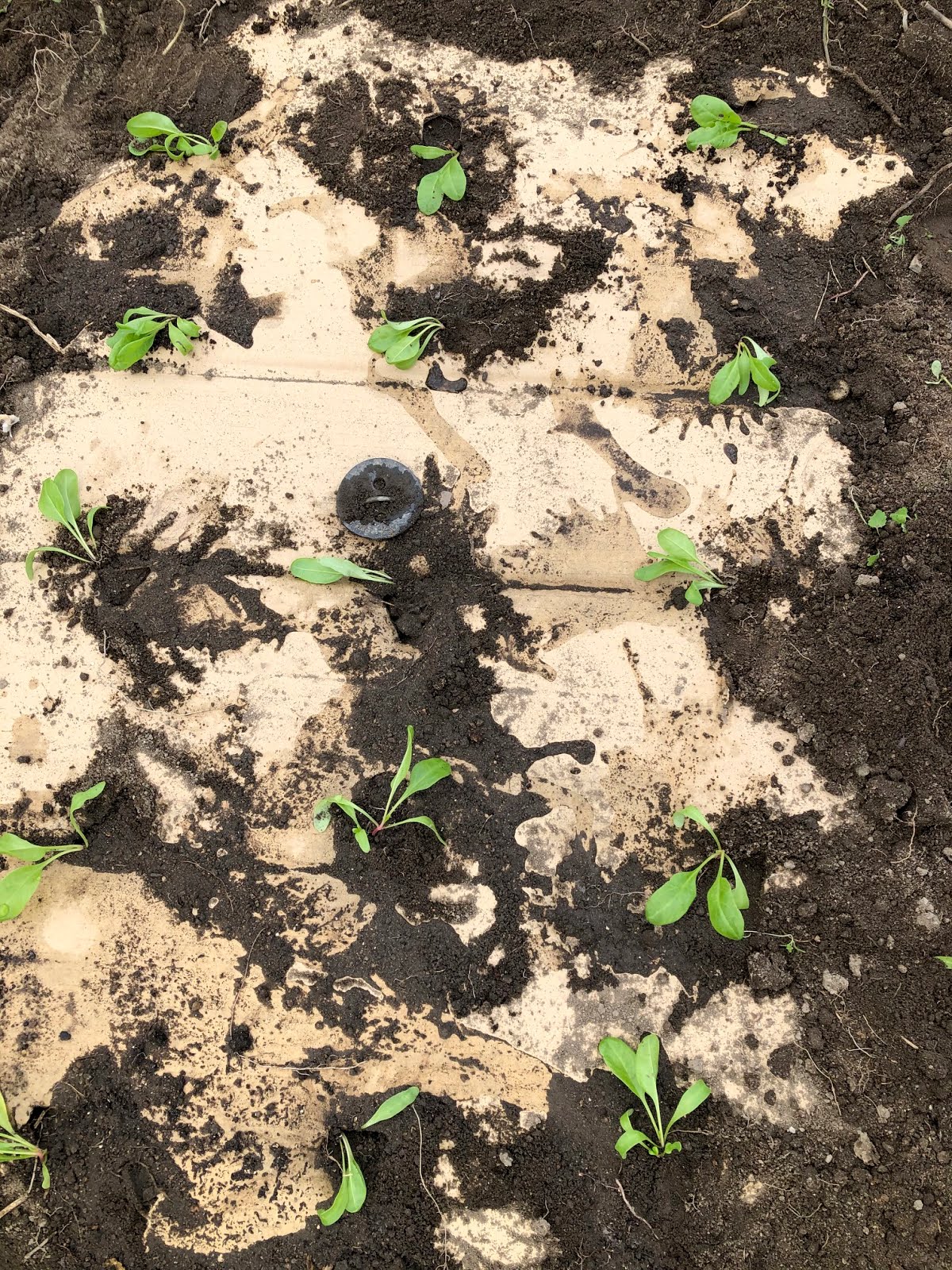 新聞紙を使うやり方は、労力と効果に疑問があったのだが、ダンボールを使うやり方は我が家でもやってみてもいいような気がしたので、試しに今日、スイスチャードの小さな苗を移植するのに使ってみた。