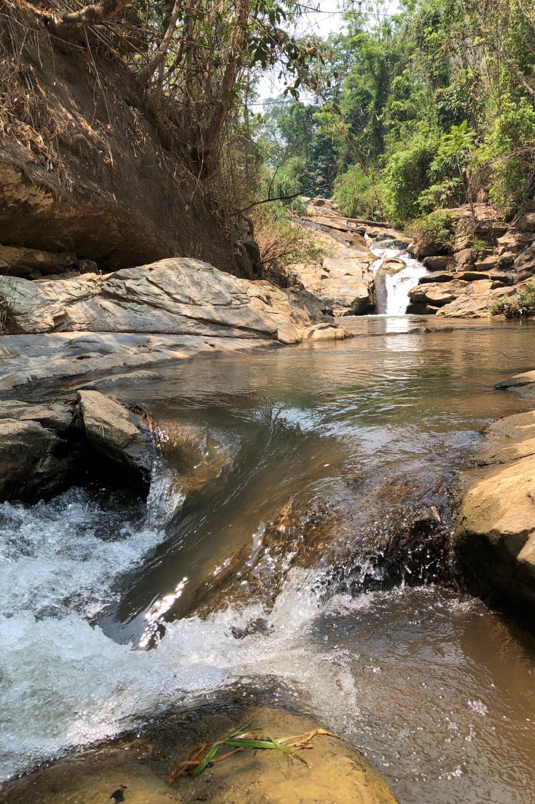 1日目(4/29):朝9時にドライバーに迎えに来てもらい、いくつかの場所を訪れたのだが、トレッキングの前哨戦として選んでいたのが、Mae Sa Waterfall(メイサの滝)。