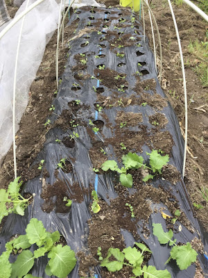 アブラナ科の野菜には、この時期モンシロチョウが集まるので、これらの苗には防虫ネットを掛けている。