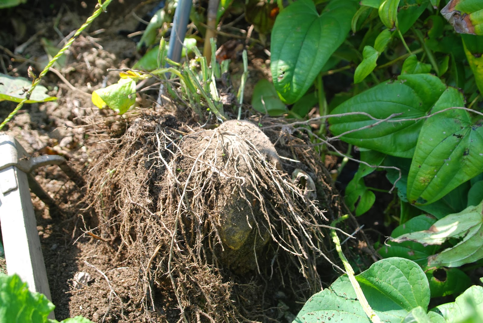 引き抜けた芋の塊をひっくり返したところが下の写真だ。