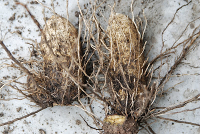 ツクネ芋には多くの髭が生え、これらが複雑に絡んでいる。