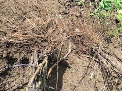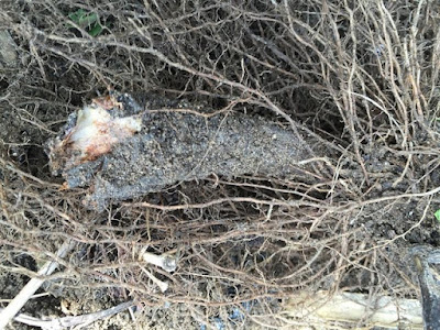 | ここに見える苗は、葉もないが茎も枯れている。 こんな苗を数株掘り返してみた。 |
