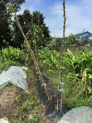 昨日の台風による風で、第1菜園の元気だったツクネ芋は、頭でっかちに茂っていた葉がかなり落ち、少し寂しい感じになっていた。