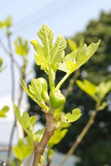先日、イチジクの木の下に植えているミョウガの新芽の紹介をしたが、今日はイチジクの新芽を紹介。