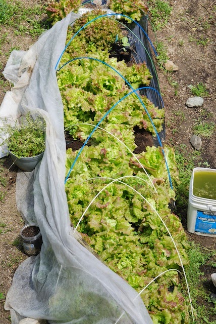| 先日まで収穫するのは勿体ないくらい小さかったサニーレタス。 最近急に大きく成長し始め、やっと本格的な収穫が始まった。 そして、収穫した場所にはツクネ芋の種芋を植えれるようになった。 |